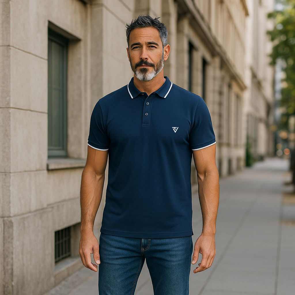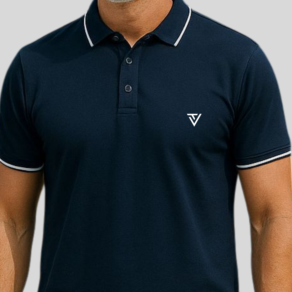 Navy Blue Premium Cotton Polo T-Shirt with White Tipping