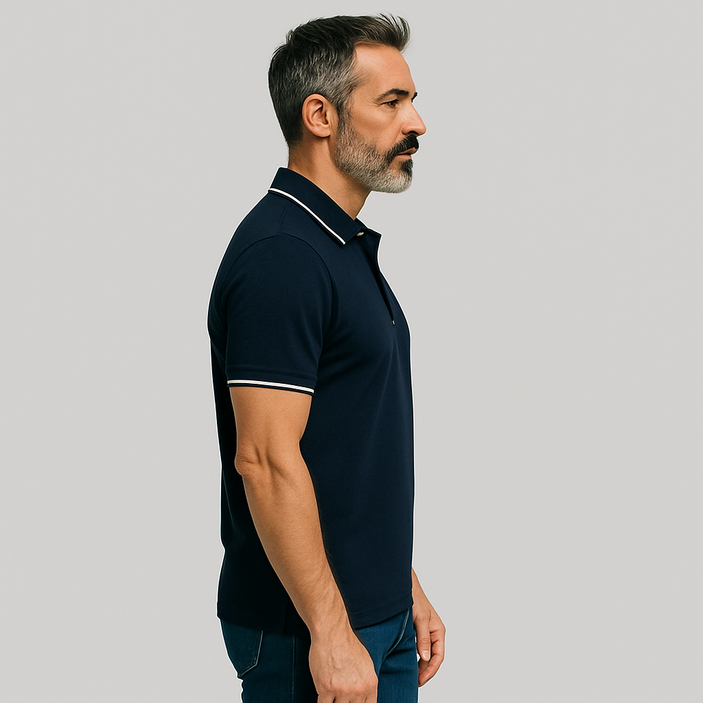 - ✅ Polo Neckline – Classic 3-button placket with ribbed collar