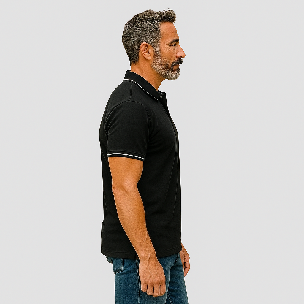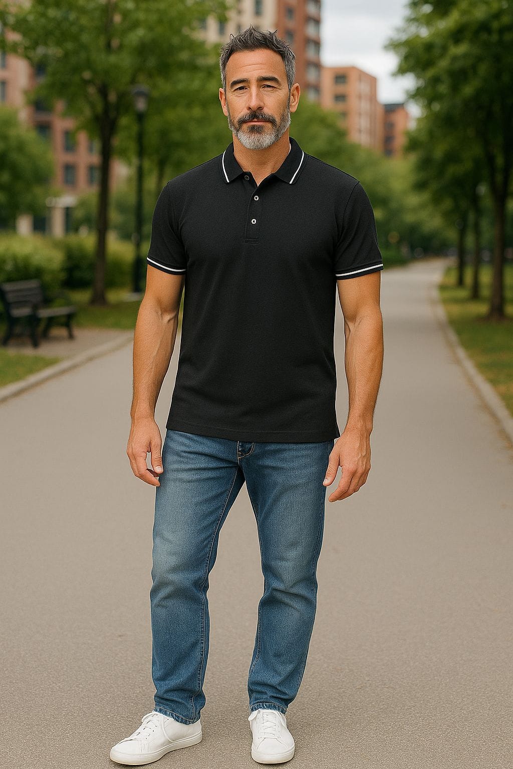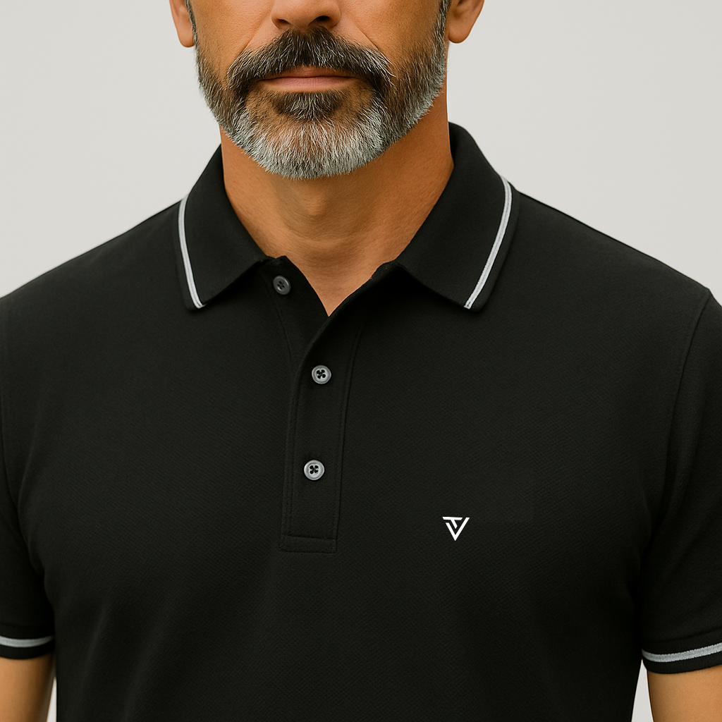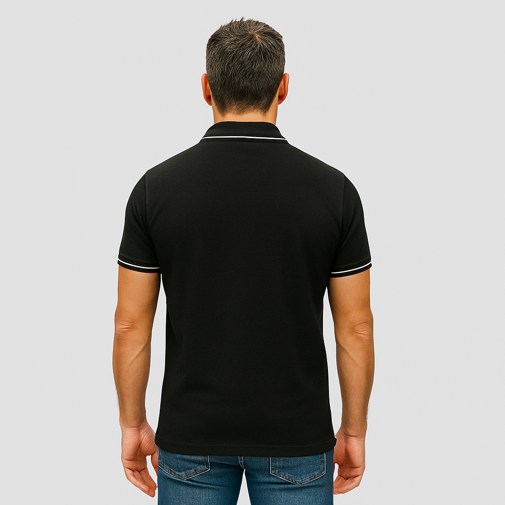 Premium Black Cotton Polo T-Shirt with White Tipping