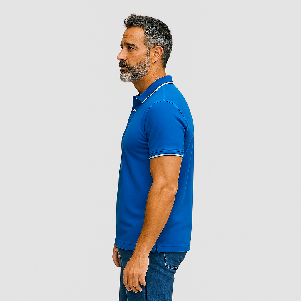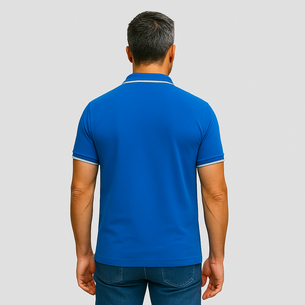 Add a bold touch to your wardrobe with our Royal Blue Premium Cotton Polo T-Shirt, accented with clean white tipping on the collar and sleeves for a sharp, sporty edge. Made from 100% premium cotton, this polo offers unmatched comfort, breathability, and a structured silhouette that’s perfect for both casual and smart-casual wear.
